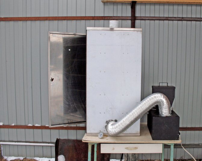 Le fumoir à faire soi-même du réfrigérateur est assemblé en une seule unité avec ces éléments. Ils sont montés sur la paroi arrière ou latérale et reliés à la chambre avec un tuyau en acier ou en PVC Ø16-20mm. L'assemblage se fait à l'aide de boulons ou de vis autotaraudeuses.