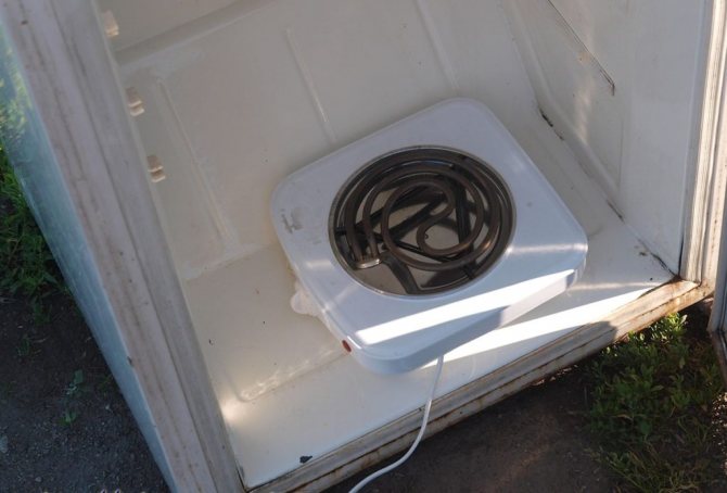- Utilisation d'une cuisinière électrique. Dans cette version, une petite cuisinière électrique est installée au bas du réfrigérateur. Après la mise en marche, une palette faite maison en acier dense est installée dessus, dans laquelle se trouve de la sciure de fruits. Un plateau en acier peut également être utilisé comme palette. Pour protéger la sciure du feu, il est nécessaire de s'assurer que la porte du réfrigérateur est bien fermée;