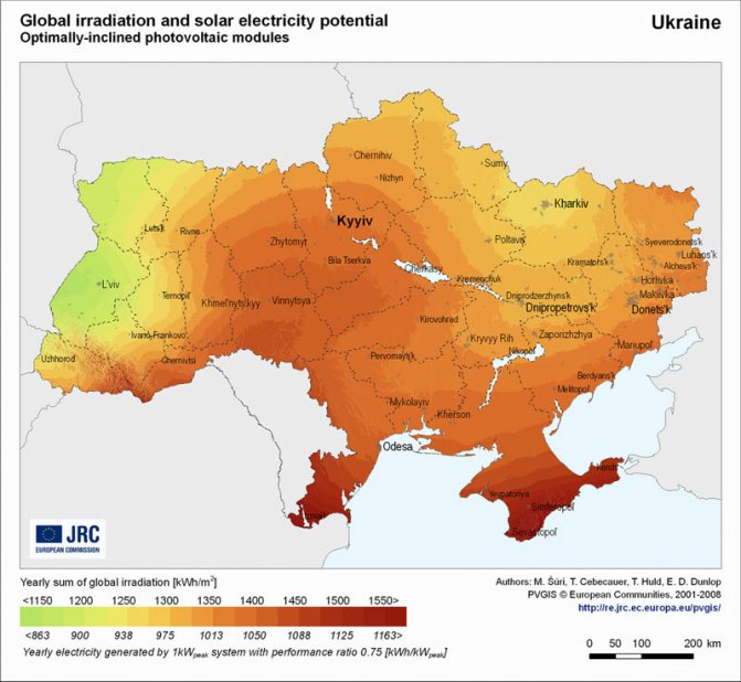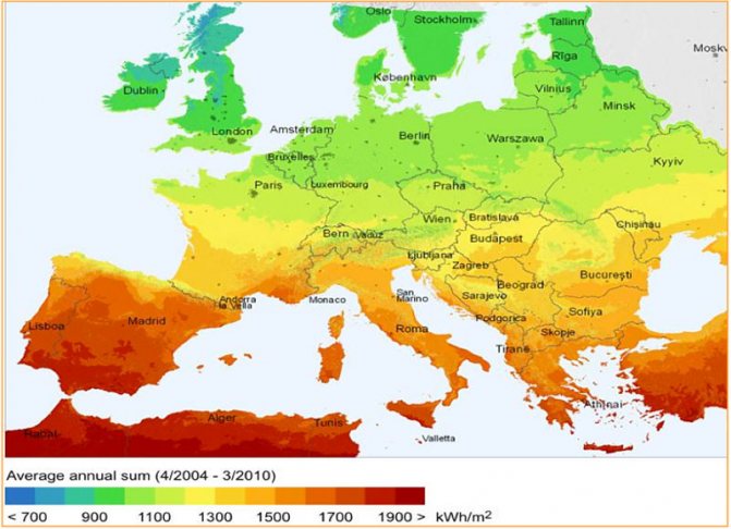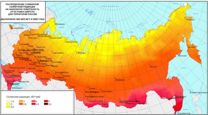 Commençons par le fait que vous devez déterminer le coefficient d'ensoleillement. L'intensité d'ensoleillement de votre région se trouve dans les tableaux météorologiques : là, le niveau de rayonnement solaire est indiqué pour chaque ville sur une base mensuelle.