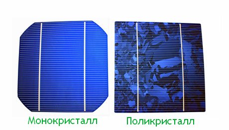 Selon la structure des cristaux dans les cellules, les panneaux solaires sont divisés en polycristallins et monocristallins. Différences entre les différentes technologies de production. Dans la pratique, il y a beaucoup de controverse sur ce qui est mieux. L'opinion la plus courante est qu'un monocristal fonctionne mieux par temps clair, mais est presque complètement inactif par temps nuageux. Un polycristal fonctionne moins bien qu'un monocristal par temps clair, mais il émet un courant de charge, bien que faible, même par temps nuageux.