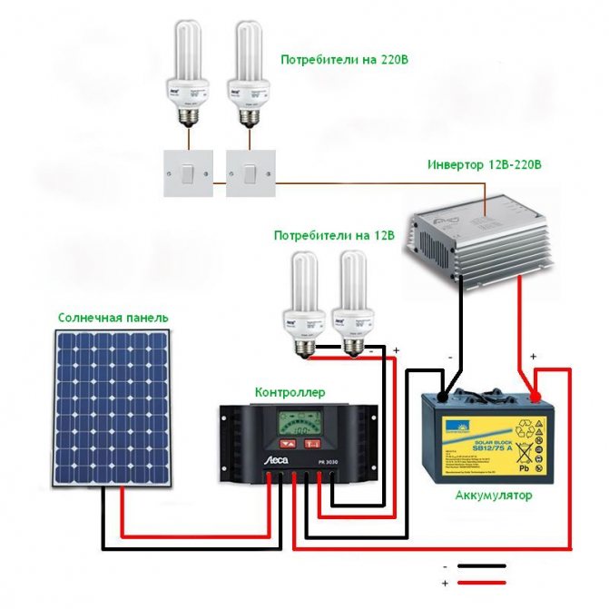 Il accumulera de l'électricité et la donnera au réseau en l'absence de soleil dans le ciel. Pour organiser le fonctionnement normal de la batterie, un contrôleur est utilisé qui surveille l'état de charge de la batterie.