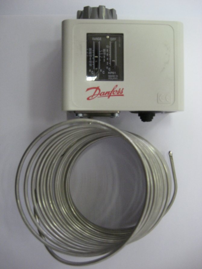 Enfin, nous sommes arrivés au thermostat le plus intéressant. C'est intéressant pour nous, en tant que ventilateurs, car il fournit l'une des protections contre le gel du chauffe-eau. Il faut dire tout de suite que le thermostat capillaire n'est pas seulement Danfoss. Il y a d'autres fabricants, il y en a beaucoup, c'est juste plus simple d'en montrer un, le principe de fonctionnement est similaire pour tout le monde, tout comme l'apparence et la méthode d'installation.