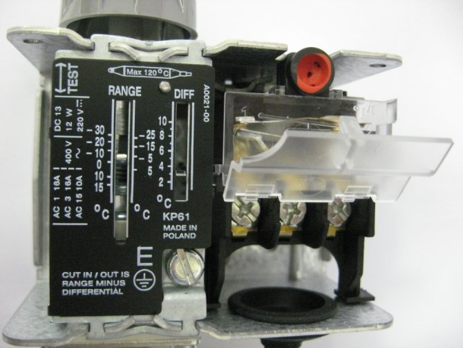 Figure 9.12 - Danfoss KP61, comment régler la température et l'hystérésis du thermostat.