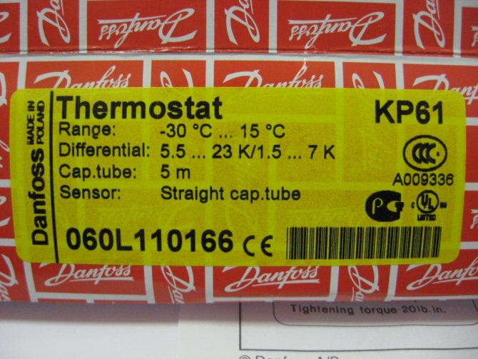 Figure 9.1 - Danfoss KP61, étiquette sur l'emballage.