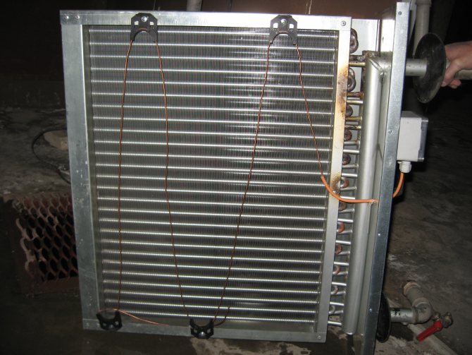 Il a une entrée et une sortie, où le "refroidisseur" chaud entre dans le premier, et le liquide refroidi sort du second. Le refroidissement se produit en raison du flux de vent de face qui traverse la pièce.