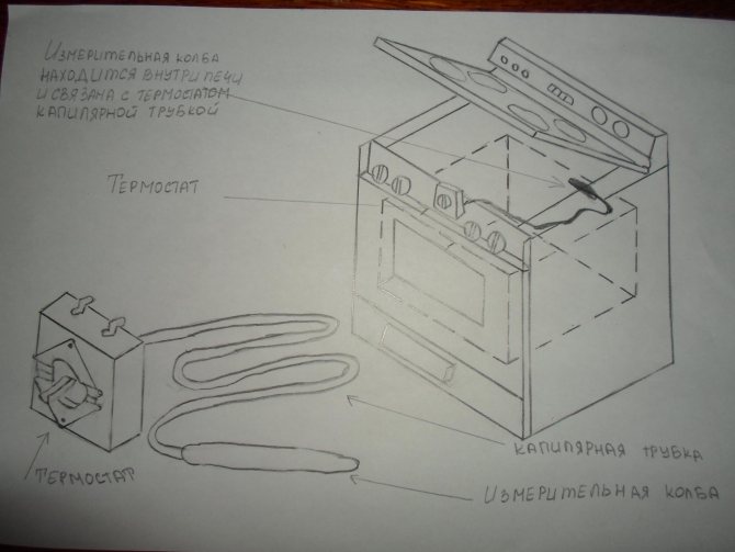 Le principe de fonctionnement du thermostat est assez simple. L'extrémité du tube capillaire du thermostat est située dans la zone de refroidissement et est fixée à l'évaporateur du réfrigérateur.Le mécanisme à levier du thermostat, situé dans la boîte, agit sur le groupe de contact lorsqu'il est refroidi - le thermostat s'ouvre. Lorsque la température augmente, le thermostat revient à sa position d'origine - les contacts d'alimentation se ferment.