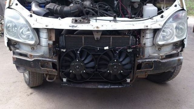 Un ventilateur de refroidissement vient à l'aide du radiateur, s'il ne fait pas face, qui fonctionne automatiquement lorsque la température du liquide dans le système atteint 105 degrés.Dans le même temps, le ventilateur refroidit rapidement et efficacement le nid d'abeille du radiateur et, lorsque la température baisse, il s'éteint.