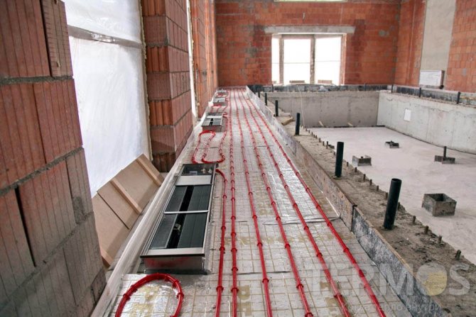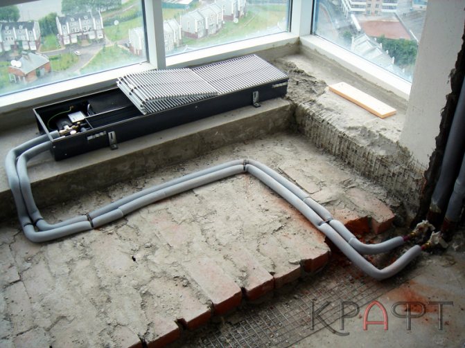 Si vous souhaitez effectuer l'installation du convecteur de sol de vos propres mains, nous vous recommandons de réfléchir à l'emplacement de son installation même au stade de la construction du bâtiment - cela facilitera l'organisation d'une niche d'une profondeur appropriée. en outre la niche elle-même doit être 1-1,5 cm plus grande (de chaque côté) que la boîte métallique de l'appareil