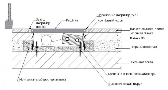... Dans le même temps, vous devez vous assurer que la partie supérieure, où sera située la grille décorative, est au même niveau que le futur revêtement de sol.