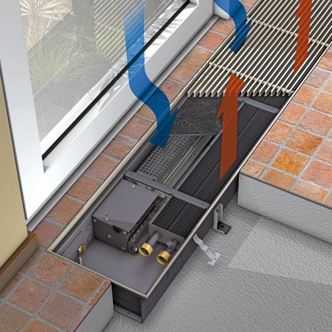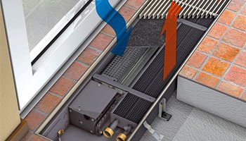 D'emblée, on remarque que l'installation de convecteurs de sol dans une chape ne dépend en aucun cas de son type. Dans ce cas, le principe de fonctionnement des différents échangeurs de chaleur est différent. Il y a deux différences principales - la méthode de circulation d'air :