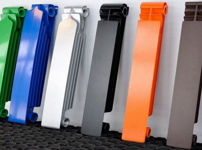 | Peintures en poudre | Fonte, acier, bimétallique | Haute résistance et durabilité, résistance aux effets de la température | La composition de poudre est appliquée par un équipement professionnel dans une chambre spéciale |