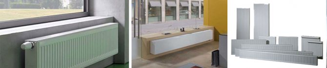 Les radiateurs à faible chauffage pour fenêtres panoramiques se distinguent par leur petite taille - avec les pieds de support, leur hauteur dépasse rarement 150-200 mm.