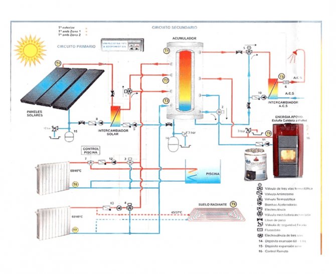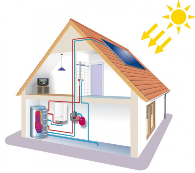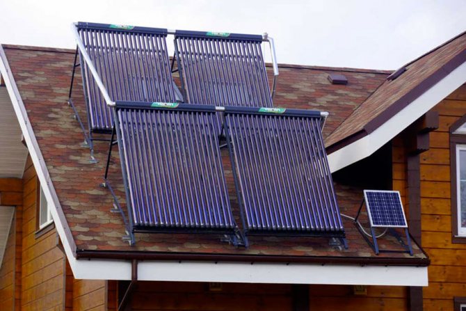 La batterie solaire pour chauffer la maison doit être installée de manière à maximiser l'éclairage solaire à cet endroit.Si le bâtiment sélectionné ne convient pas à l'installation d'un tel système, vous pouvez utiliser le bâtiment adjacent. Le lecteur peut être placé dans un sous-sol. il existe également des systèmes où plusieurs lecteurs sont utilisés. Dans ce cas, leurs tailles seront légèrement plus modestes. Ceux qui ont décidé eux-mêmes de choisir de chauffer une maison privée avec des panneaux solaires peuvent parler en toute sécurité de la justesse de leur décision. L'énergie solaire est une source de chaleur inépuisable, et elle est absolument gratuite. Pour ce faire, il vous suffit d'investir un certain montant dans l'équipement et l'installation du système, puis il sera non seulement entièrement rentabilisé, mais vous évitera également d'avoir à payer de l'argent aux services publics.