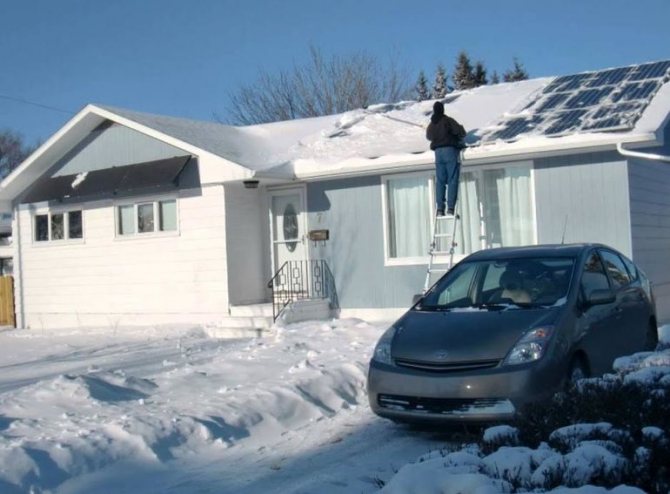 Nettoyer les panneaux solaires de la neige - lorsqu'ils sont correctement installés, ne prend pas plus de temps que de déneiger les sentiers