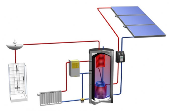 Nous avons installé deux collecteurs sous vide de 24 tubes non loin de la maison. Pas assez pour le chauffage, mais assez pour l'eau chaude. L'eau n'est que de l'eau bouillante. Les installateurs ont aidé à le connecter au système de chauffage pour chauffer l'eau, puis aux 70 degrés requis avec une chaudière à gaz.