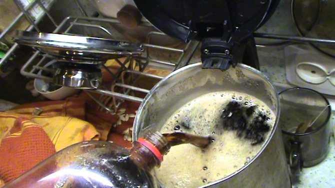 - Les bouchons sont dévissés, le liquide est drainé et de l'eau diluée avec de l'acide citrique est à nouveau versée à l'intérieur. Ensuite, vous devez fermer toutes les fiches et laisser l'équipement pendant quelques heures. Si possible, il est recommandé de réchauffer l'eau avec de l'acide, ce qui active les processus chimiques.