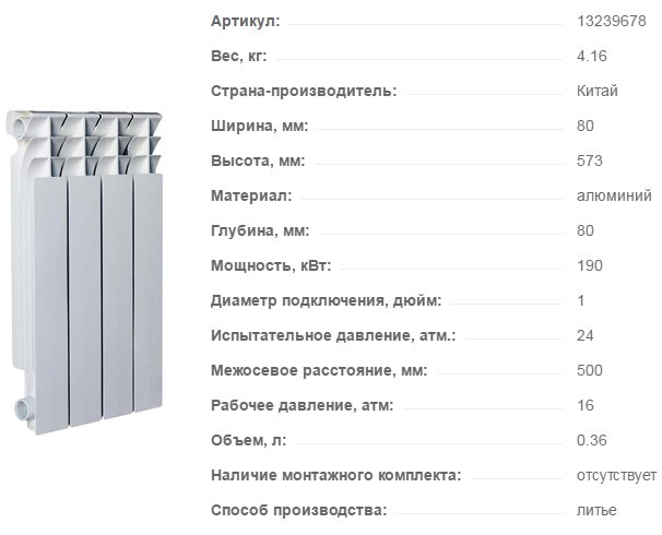 En regardant le petit tableau, vous pouvez immédiatement remarquer que les radiateurs en aluminium peuvent être sélectionnés en fonction de la pression de fonctionnement requise, de la température du liquide de refroidissement dans le système et du prix.