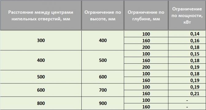 Ce paramètre est important si les conduites d'alimentation sont en bon état et qu'il n'est pas nécessaire de les changer. Dans ce cas, afin de ne pas digérer le liner, vous pouvez choisir un modèle avec la même distance centre à centre que les anciens radiateurs.