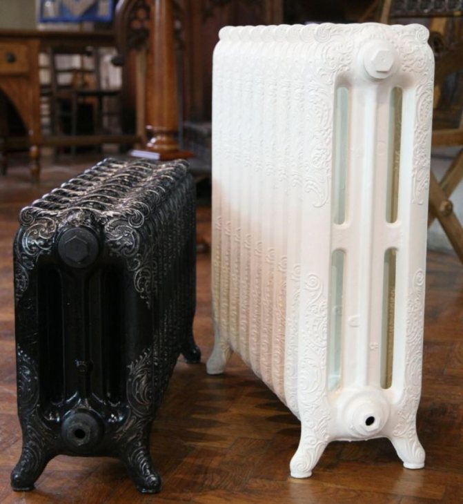 Aujourd'hui, non seulement l '«accordéon» est en fonte, bien qu'il existe et qu'il soit populaire. Il existe également des radiateurs de style rétro avec un entraxe de 500 mm, fabriqués dans un style moderne: