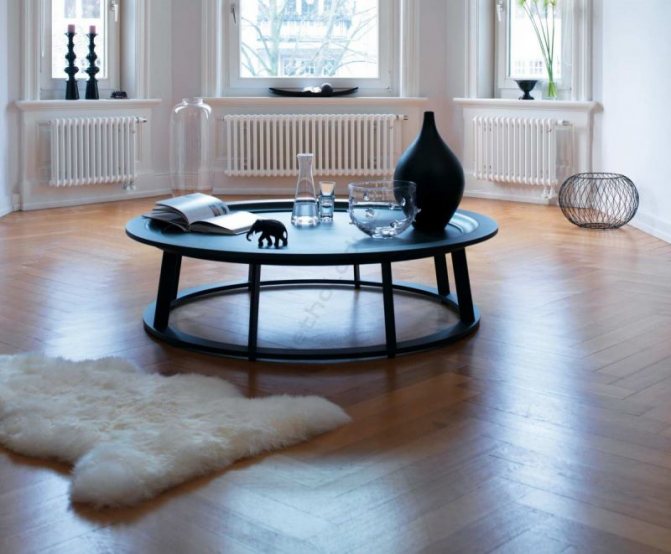 Et le plus bas peut être considéré comme les convecteurs intégrés dans le sol. Ils ne font pas du tout saillie au-dessus du niveau du sol, mais sont placés pour chauffer des vitrages solides ou intégrés dans les appuis de fenêtre des fenêtres panoramiques. Il existe des puissances et des usages différents, ils peuvent être utilisés comme chauffage supplémentaire ou principal.