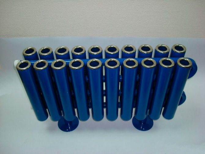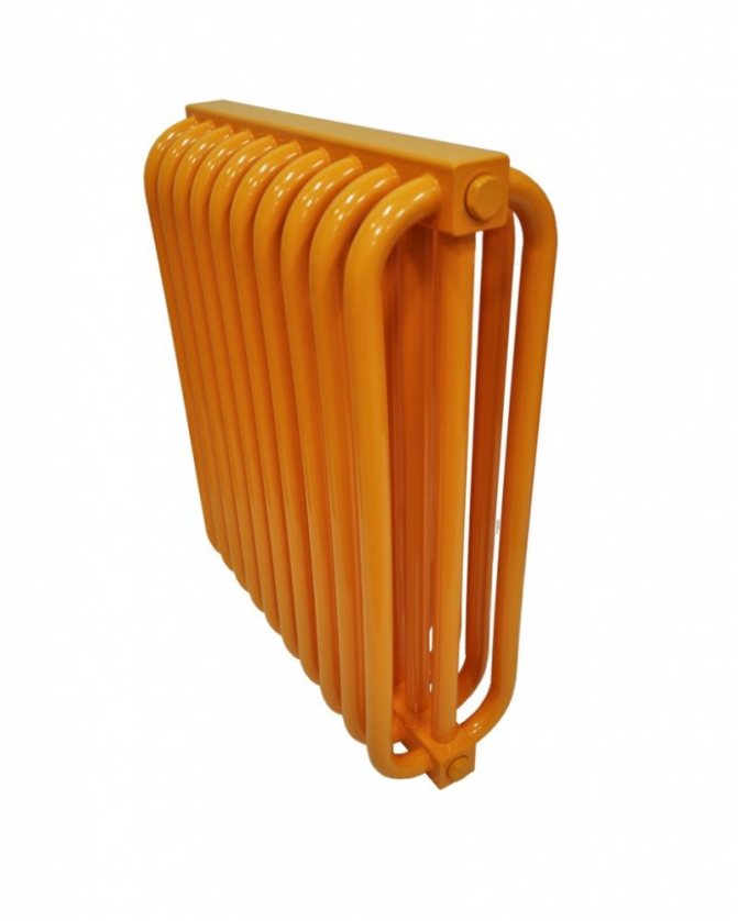 Structurellement, une batterie tubulaire n'est pas très complexe: en principe, il s'agit d'une section de tubes disposés verticalement ou horizontalement de différentes longueurs, reliés par deux collecteurs - un supérieur et un inférieur. Visuellement, cet appareil de chauffage ressemble à une batterie en fonte bien connue ou à un accordéon étiré, mais en même temps, il existe des formes extravagantes réalisées selon un projet de conception individuel. Le matériau du tube est de l'acier de haute qualité, bien qu'il existe des structures en aluminium et en cuivre.