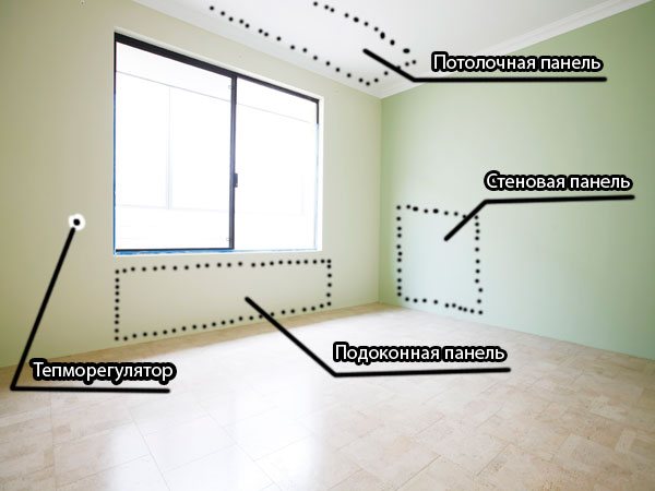 L'installation d'un panneau chauffant au plafond rend problématique le transfert de chaleur par convection. Mais le processus de transfert des masses d'air chauffé par rayonnement devient très optimal et atteint 70 à 75% du volume total d'air chaud.