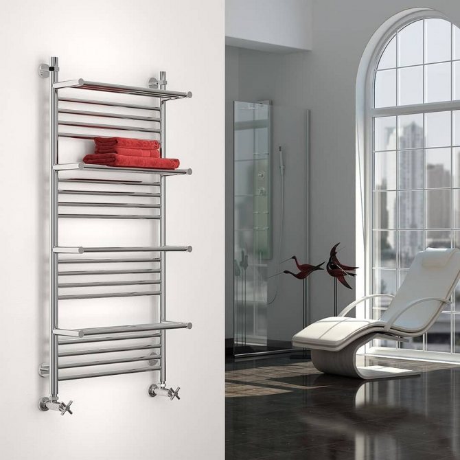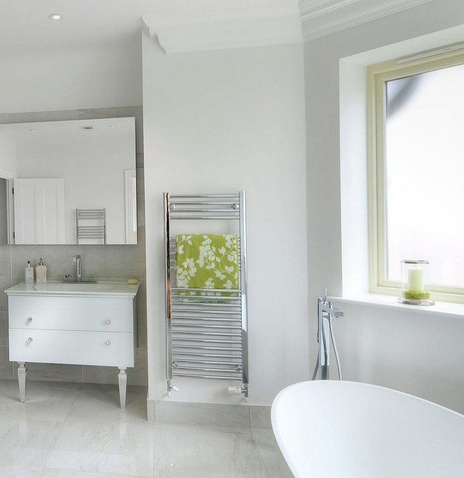 Cet appareil est définitivement un must pour toute salle de bain. Grâce au sèche-serviettes, la salle de bain sera constamment chauffée, ce qui ne contribuera pas à la formation d'humidité et de moisissure sur les murs. Et aussi avec l'aide de cet appareil, il sera possible de sécher des serviettes et de petites choses.