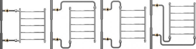 La bobine peut être fixée sans installer de dérivation, mais les experts recommandent qu'un cavalier soit fourni à l'avance. Des vannes à bille sont installées aux extrémités du sèche-serviettes. Si nécessaire, il sera possible de couper l'alimentation en liquide de refroidissement de l'appareil, tandis que l'eau circulera librement à travers la colonne montante.