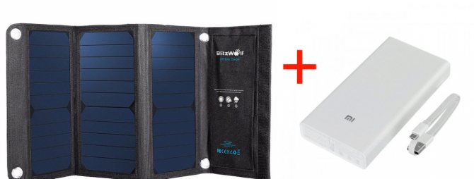 Pour cela, un ensemble batterie-batterie externe est le mieux adapté. Le fait est que souvent la batterie fournit plus d'énergie qu'un smartphone, un chargeur, etc. n'en consomme. Une partie de l'énergie n'est pas utilisée. Et lorsque la batterie de l'appareil est en cours de chargement, elle s'éteint automatiquement. Et puis toute l'énergie ne va nulle part. La même énergie, qui fait alors si peu défaut par temps nuageux.