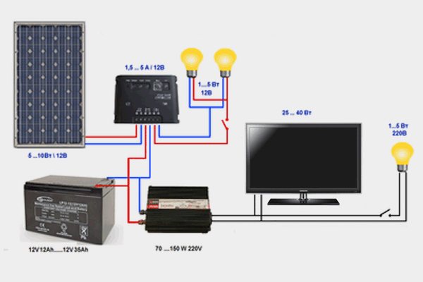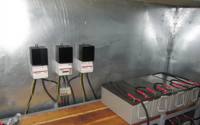 En plus du module solaire, le dispositif d'une telle centrale comprend des convertisseurs photovoltaïques - un contrôleur et un onduleur, ainsi que des batteries qui y sont connectées.