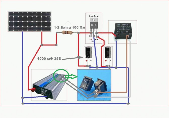 Schéma de connexion de sauvegarde mixte. Ils dépendront des dimensions des panneaux eux-mêmes et de leur nombre.