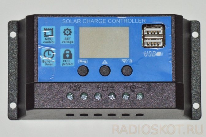 La deuxième méthode est souvent utilisée par les propriétaires de maisons privées ou de campagne pour créer un réseau d'éclairage basse tension. Ils achètent un contrôleur bon marché et y connectent des panneaux solaires. L'appareil est compact, de taille comparable à un livre de taille moyenne. Il est équipé de trois paires de contacts en face avant. Les modules solaires sont connectés à la première paire de contacts, une batterie est connectée à l'autre, et l'éclairage ou d'autres dispositifs de consommation basse tension sont connectés à la troisième paire.
