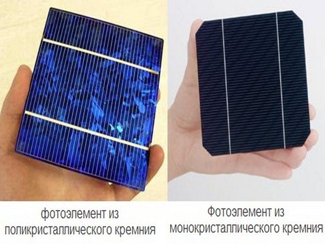 La tâche principale et plutôt difficile est de trouver et d'acheter des convertisseurs photovoltaïques. Ce sont des plaquettes de silicium qui convertissent l'énergie solaire en électricité. Les cellules photovoltaïques sont divisées en deux types : monocristallines et polycristallines. Les premiers sont plus efficaces et ont un rendement élevé - 20-25%, et les derniers ne sont que jusqu'à 20%. Les cellules solaires polycristallines sont bleu vif et moins chères. Et mono peut être distingué par sa forme - il n'est pas carré, mais octogonal, et leur prix est plus élevé.