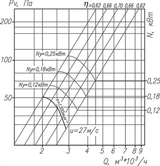 - HB (kgf / m2) - pertes totales dans le système de ventilation.