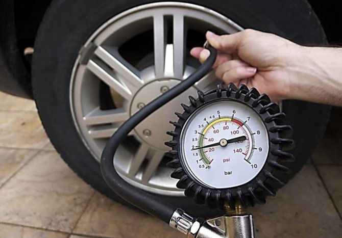 Donnons l'exemple suivant. Cette photo (à droite) montre la mesure de la pression dans un pneu de voiture à l'aide d'un appareil. manomètre.