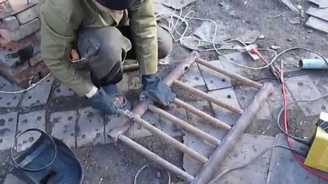 - Les tuyaux profilés sont disposés horizontalement, des cavaliers sont posés entre eux strictement le long des trous, puis ils sont soudés.