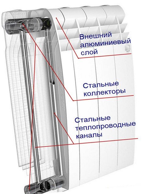 Ils sont dépourvus des inconvénients que l'on retrouve dans les produits en aluminium et en fonte. La présence d'un noyau en acier est une caractéristique qui a permis d'atteindre une résistance à la pression colossale de 16 à 100 kg / cm 2. Le transfert de chaleur des radiateurs bimétalliques est de 130 à 200 W, ce qui est proche de l'aluminium en termes de performances . Ils ont une petite section transversale, donc avec le temps, il n'y a pas de problèmes de pollution. Les inconvénients importants peuvent être attribués en toute sécurité au coût prohibitif des produits.