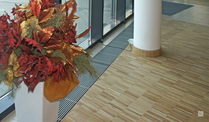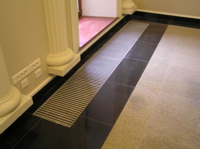 Conseils. La grille du radiateur de sol joue également un rôle décoratif important. C'est pourquoi, dans le processus de sélection, il est important de choisir un tel treillis qui s'intégrerait bien à l'intérieur environnant de la pièce, afin que la conception de la pièce soit complète.