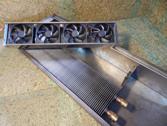 - Réchauffeur à ailettes ou échangeur de chaleur. C'est un circuit métallique avec des plaques attachées, soudées chimiquement avec des molécules d'argent. Les plaques sont étroitement liées à la base. Ni les températures élevées ni le changement constant d'état résultant de la dilatation-contraction n'affectent la résistance de la liaison. La chaleur du circuit est transférée aux plaques, à partir desquelles se produit un échange de chaleur avec l'air.