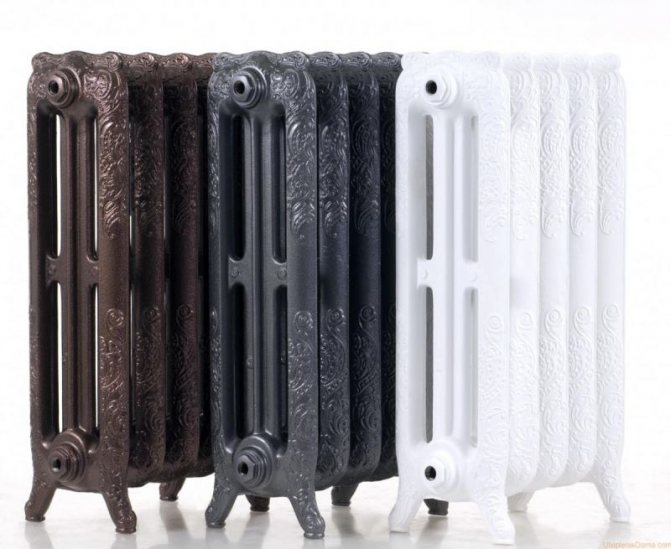 - Les radiateurs en fonte les plus lourds sont fabriqués dans le style «rétro», les plus légers - dans le style «moderne».