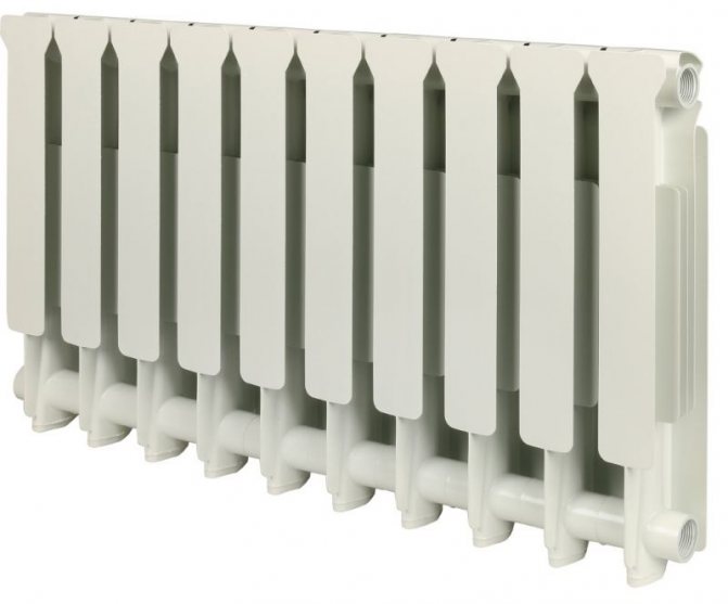 Le radiateur est agencé assez simplement - il est assemblé à partir de composants dont le nombre peut varier de 4 à 10, en fonction de la taille de la pièce et de l'intensité du chauffage nécessaire à la piècee) Les sections sont interconnectées par des mamelons et, en règle générale, du caoutchouc résistant à la chaleur ou de la paronite est utilisé comme joints entre eux. Les sections sont disposées verticalement, ce qui augmente la surface de l'élément chauffant et son transfert de chaleur.