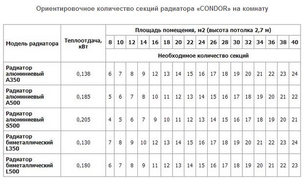 - la puissance d'une section d'un radiateur particulier est écrite à partir des caractéristiques du passeport. Par exemple, choisissons le modèle aluminium A350, 1 segment est capable de fournir 138 W d'énergie thermique;