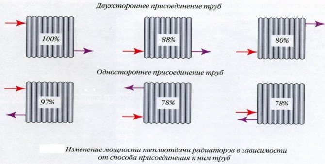 Noter! La méthode de connexion joue également un rôle important dans l'uniformité de son chauffage, et donc la quantité de transfert de chaleur.