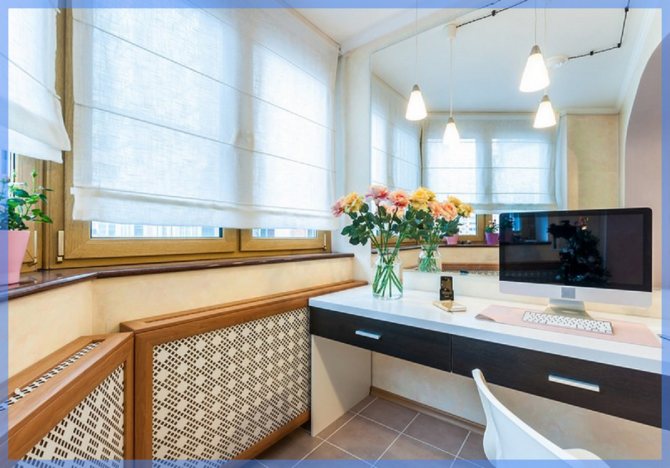 Lors du choix d'une telle solution de conception, gardez à l'esprit que les murs et les pentes doivent être traités avec un apprêt antiseptique afin que la moisissure n'apparaisse pas. Dans le plan de travail, disposez une grille de ventilation pour faire circuler l'air du radiateur vers la vitre.