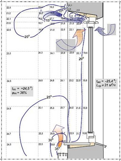 La fenêtre s'ouvrant dans la structure de la pièce a un grand espace équipé d'une unité de fenêtre à travers laquelle l'air extérieur pénètre dans la pièce. Quelle que soit la façon dont l'isolation thermique des murs est renforcée, le bâtiment perd 25 à 35% de sa chaleur à travers les charpentes et le verre. C'est un très grand indicateur de perte de chaleur. Dans le même temps, c'est par les fissures des cadres que l'air frais mais refroidi pénètre dans la pièce.
