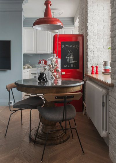Certaines personnes résolvent ce problème en quadrature en combinant plusieurs pièces ou en créant une cuisine de studio, c'est-à-dire un coin séparé pour la cuisine et un salon ou une salle à manger. C'est une bonne option, mais tout le monde n'est pas d'accord, surtout si l'appartement est d'une pièce. D'une part, la cuisine devient automatiquement plus grande visuellement, et d'autre part, vous avez la sensation de dormir dans la salle à manger.