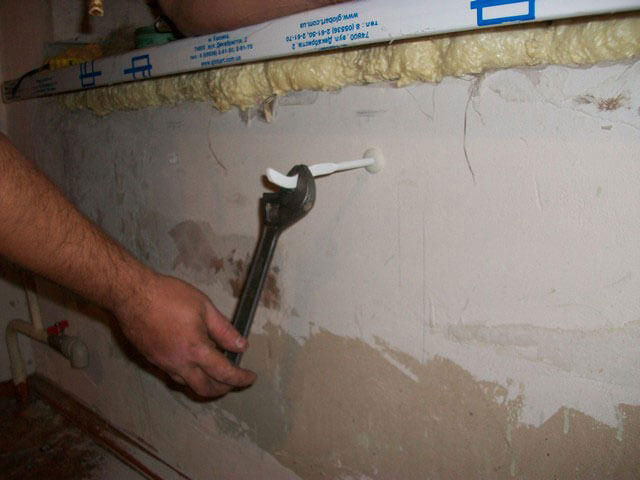 - Ensuite, selon les marques marquées, à l'aide de chevilles, avec une profondeur d'au moins 6 cm dans le mur, installez les fixations.