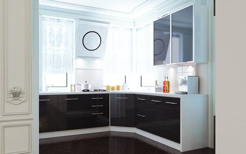 Cuisine d'angle minimaliste avec comptoir noir