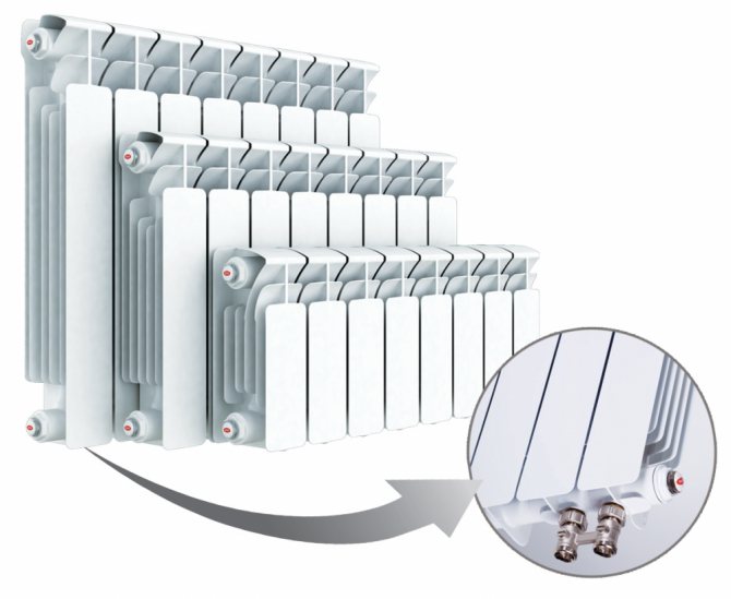 Tous les modèles de batteries de ce fabricant russe sont disponibles avec des connexions inférieures et latérales. Cette variabilité leur permet d'être utilisés avec différents schémas de chauffage.Dans les maisons privées, les plus attrayants seront les radiateurs avec une connexion par le bas et dans les immeubles d'appartements avec une connexion latérale.