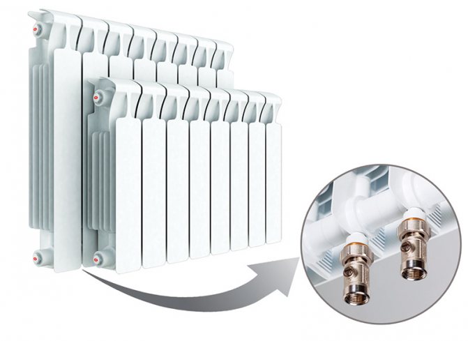 Ventiler - une caractéristique de cette version de batteries bimétalliques est la présence d'une connexion inférieure dans laquelle une vanne de régulation thermostatique est intégrée.